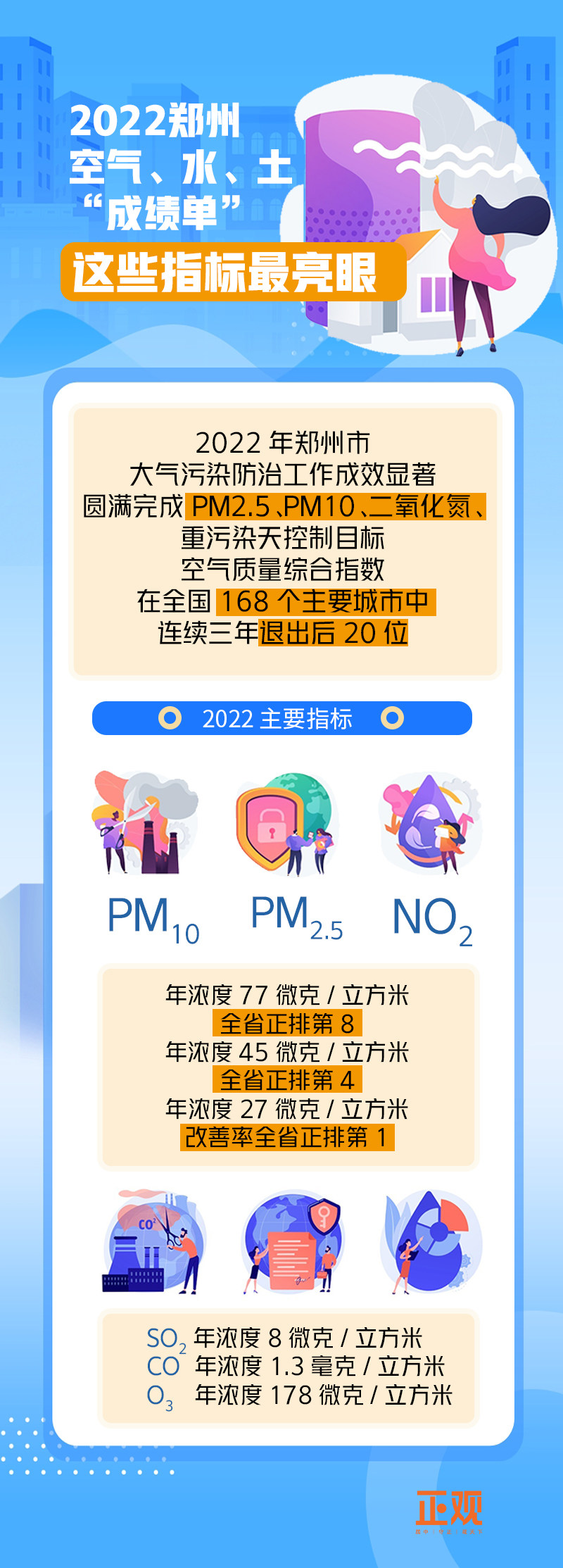 2022年郑州空气、水、土“成绩单”,这些指标最亮眼