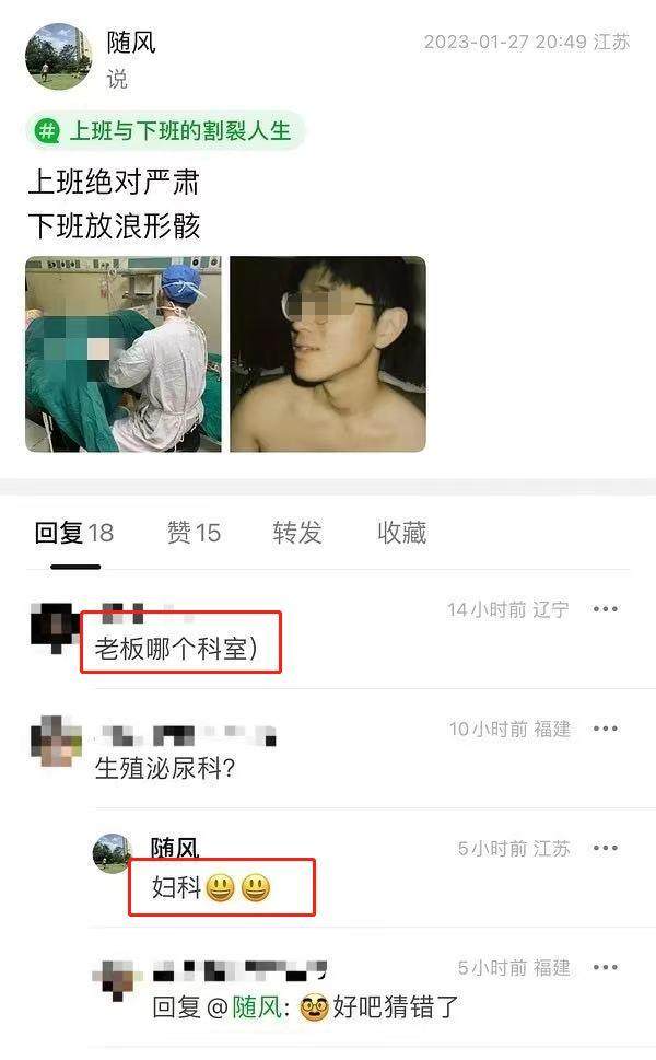 1月31日,有网友向记者爆料称,江苏省昆山市第一人民医院友谊院区,妇产科医生姜某(男性)在其个人社交媒体账号上,公开发布了患者就诊时照片,且涉及隐私部位。流传于社交平台的配图一张为女患者接受治疗时的私密部位照片,另一张为诊疗男医生自拍照,并配文称“上班绝对严肃,下班放浪形骸”。2月1日,记者从昆山12345了解到,涉事医生已暂停执业,相关部门启动调查。(2月1日天目新闻)