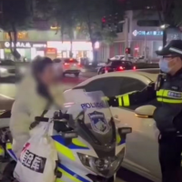 1月31日,广东东莞一名交警在路边执行公务时,一女子突然坐到警用摩托上拍照,面对交警的警告,女子却大喊:“我喜欢你,我就坐一下嘛!”在交警第三次警告后,女子依然拒绝下车,还拿起头盔套在自己的头上,最终被采取强制措施。