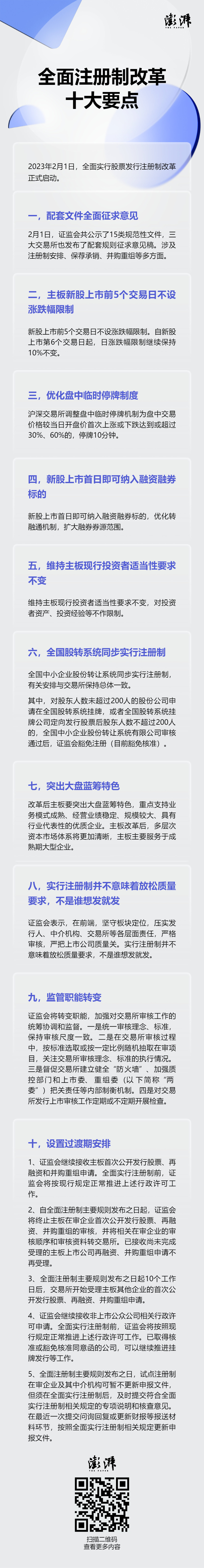 “特别是进入2023年后,市场运行显得更加平稳,投资者对后市预期也较好,在这种情况下,全面注册制改革的启动更具有相应的基础。”桂浩明说。