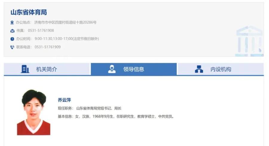 记者查询发现,山东省政府官网“山东省体育局领导信息”栏目更新显示,乔云萍已经担任山东省体育局党组书记、局长。