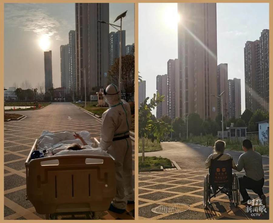 △2020年3月5日,武汉大学人民医院东院区,90后援鄂医生刘凯在护送罹患新冠肺炎的87岁老人王欣出病房做CT途中,让老人欣赏了一次久违的落日。时隔半年,9月4日,痊愈的王欣老人和刘凯在武汉重逢,再现了看夕阳的经典画面。(资料图)