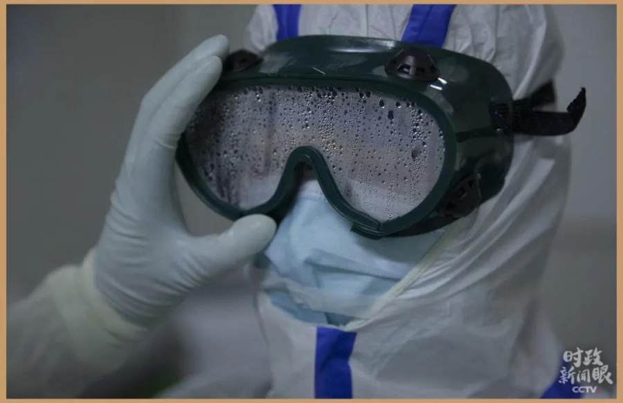 △2020年2月24日,武汉客厅方舱医院援鄂医疗队员的护目镜。