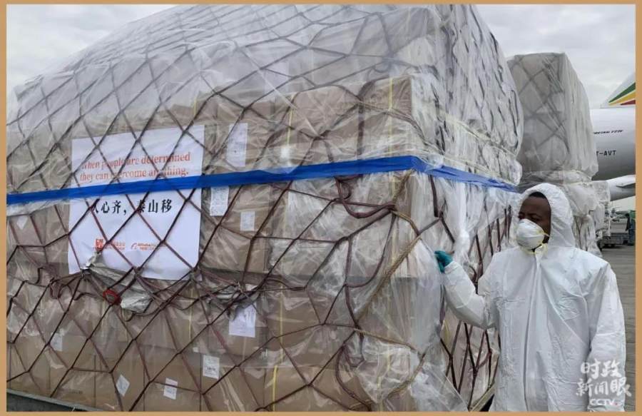 △2020年3月22日,用于支援非洲54国抗击疫情的中国援助物资运抵埃塞俄比亚首都亚的斯亚贝巴国际机场。