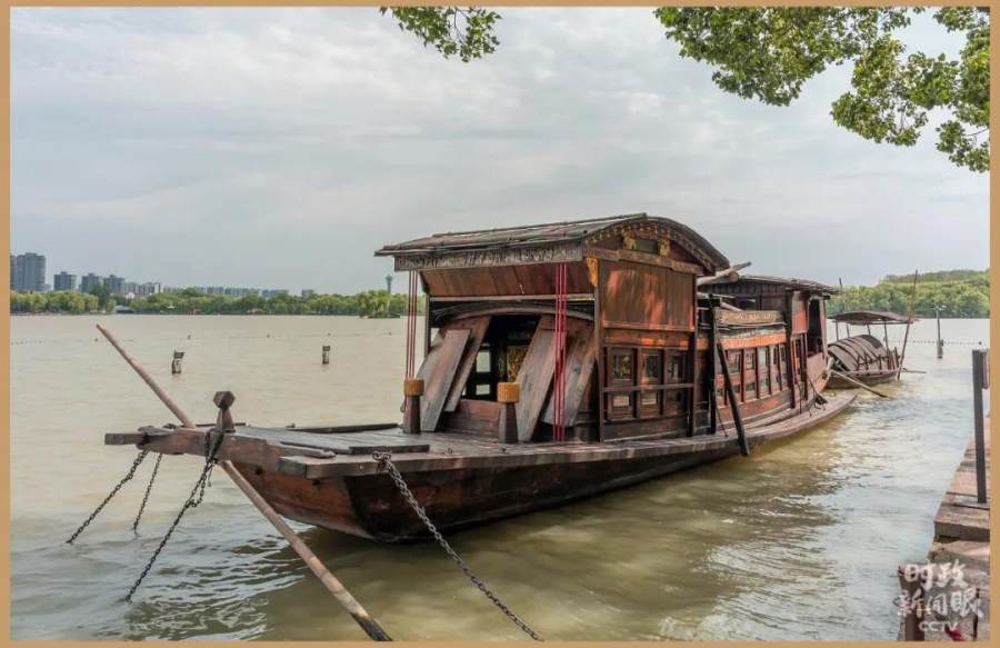 △ 位于嘉兴南湖上复建的“红船”。