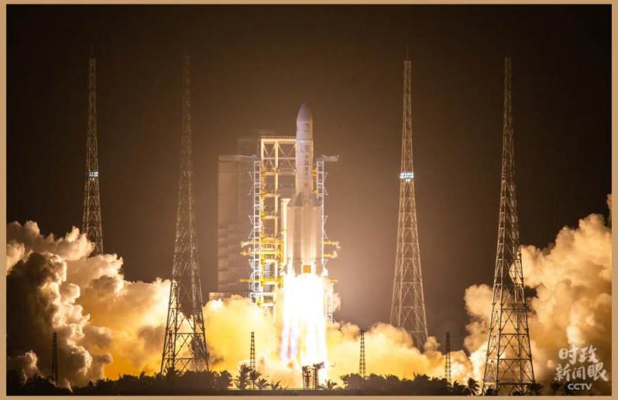 △2020年11月24日,海南文昌,我国用长征五号遥五运载火箭成功发射探月工程嫦娥五号探测器。