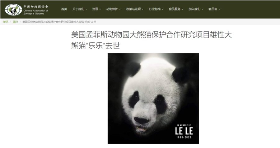 据中国动物园协会官网消息,2023年2月2日,中国动物园协会接到美国孟菲斯动物园通知,旅美开展大熊猫保护合作研究项目的25岁大熊猫“乐乐”于美国当地时间2月1日早晨被发现死亡。中方对此深表遗憾和惋惜。