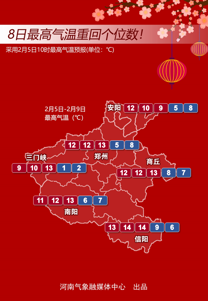 预报来源:河南省气象台2023年2月5日12时预报