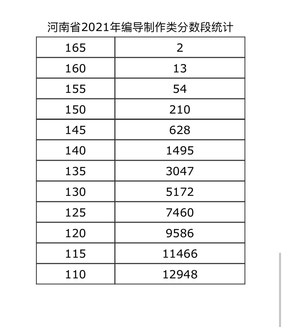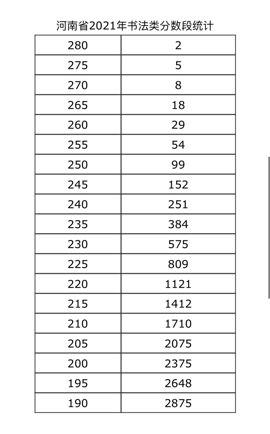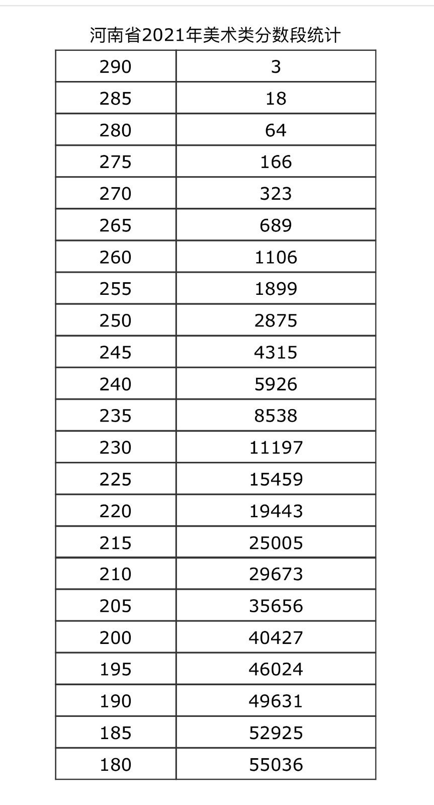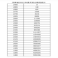 附:河南省2021年艺术类分数段统计表(美术、书法、编导制作)