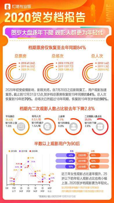 贺岁档观影总人次也恢复到2019年的70%,达0.9亿人次;总场次已超过2018年同期,恢复到2019年贺岁档的90%,达1208.6万场。