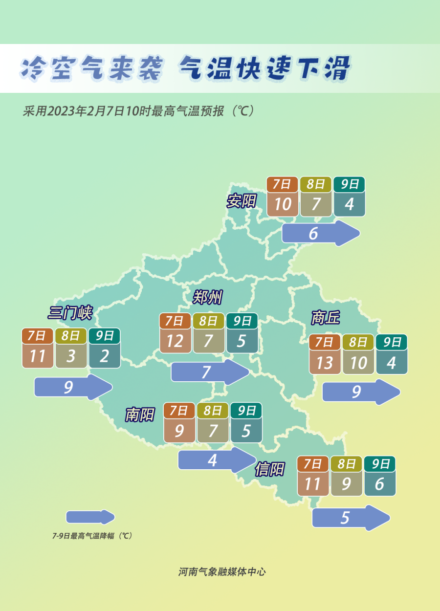受冷空气影响,今天夜里到明天,全省大部东北风4级左右,北中部阵风7级左右。明天到9日,最高气温较前期下降4到7度,其中西部局部8到10度。