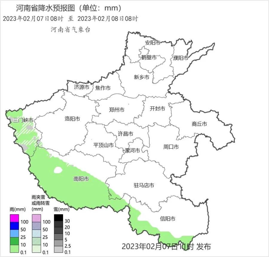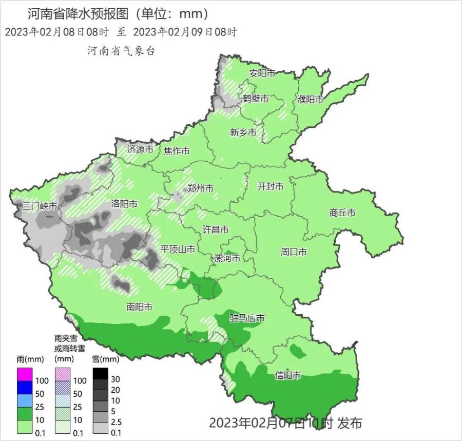 明天,全省阴天,淮河以北大部有小雨或雨夹雪,其中安阳西部、焦作、济源、三门峡、洛阳南部、平顶山西部、郑州西部部分县市有小到中雪;其他县市有中雨。
