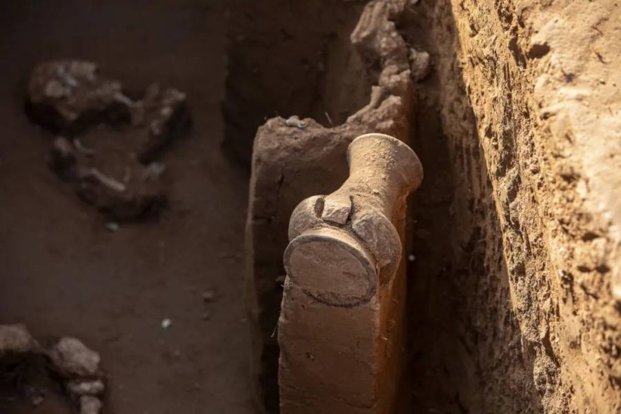 祭祀坑内发掘出的商代陶器。麻翛然 摄