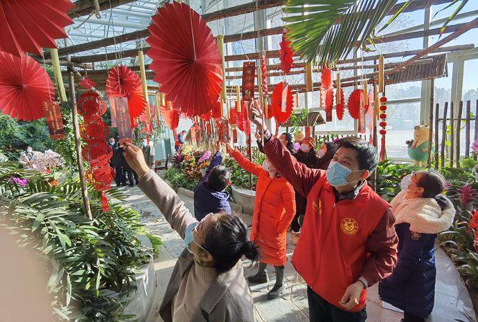 走进郑州植物园热带植物展览温室,浓浓的年味儿扑面而来。五颜六色的蝴蝶兰将温室装点得格外美丽,大红色的灯谜走廊下已吸引不少市民前来竞猜,牛年民俗、牛的精神等景观与花艺相得益彰,令人如沐春风。
