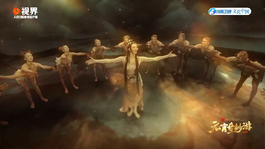 在有着“正月十五燃灯祈福”习俗的汉代,人们祭祀先祖,祈愿庇佑。这一部分我们通过《中国神话·女娲补天》节目,以现代舞的形式重新讲述女娲补天救世的故事。而唐代元宵节气氛更为浓厚,我们通过《盛世大唐万国来朝》的场景,展示了唐代流行的胡旋舞、绿腰舞以及恢弘大气的宫廷舞。宋代时上元夜取消“宵禁”,青年男女有了更多浪漫邂逅的可能性,这一部分的舞蹈《只若初见》,就表现了人们对于理想爱情的憧憬,甚至加入了一些超现实的元素,“瞬间即永恒”。