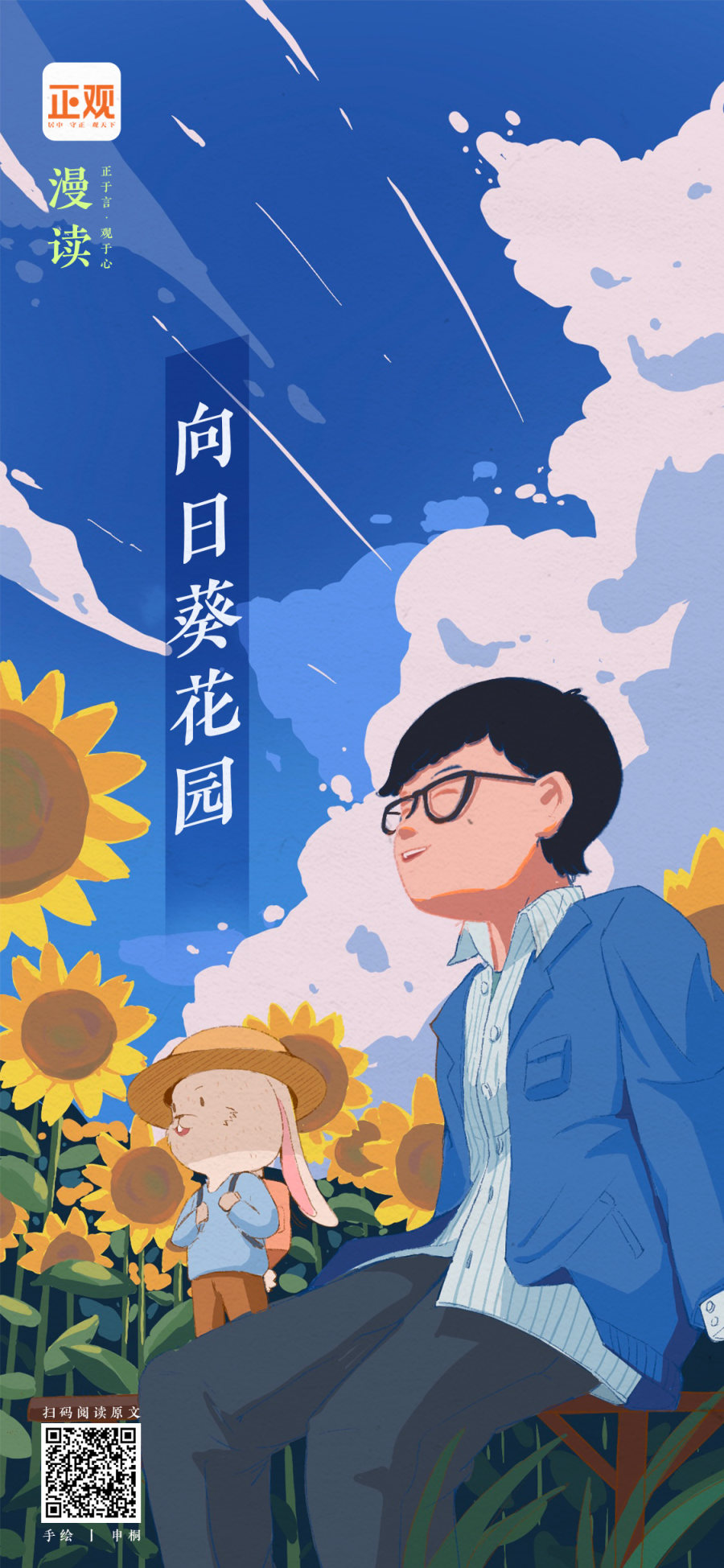 “之前一直困在自己的心结中,不能自拔,有一天,我路过一个花园,里面种满了向日葵,大片大片的向日葵,全都向着太阳,那种景象,你不知道多么耀眼、多么壮观、多么动人心魄!