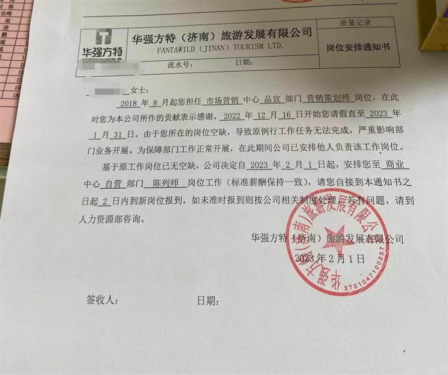 更为关键的是,明明解决问题的办法有很多,比如说跟员工协商提前返岗,或者说临时增加岗位,但济南方特偏偏选择了最不体面的处理方式。该公司先是要求员工主动离职并强制解绑其部分账号运营权限,继而未经员工同意就私自调岗,类似的做法不仅过于冰冷生硬,也侵犯了劳动者的合法权益。