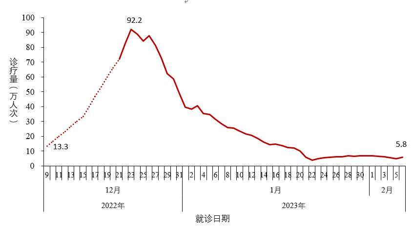 说明:自2022年12月9日起,监测二级以上医疗机构发热门诊诊疗量;12月21日起,增加监测社区卫生服务中心和乡镇卫生院发热诊室诊疗量(不含村卫生室和社区卫生服务站)。
