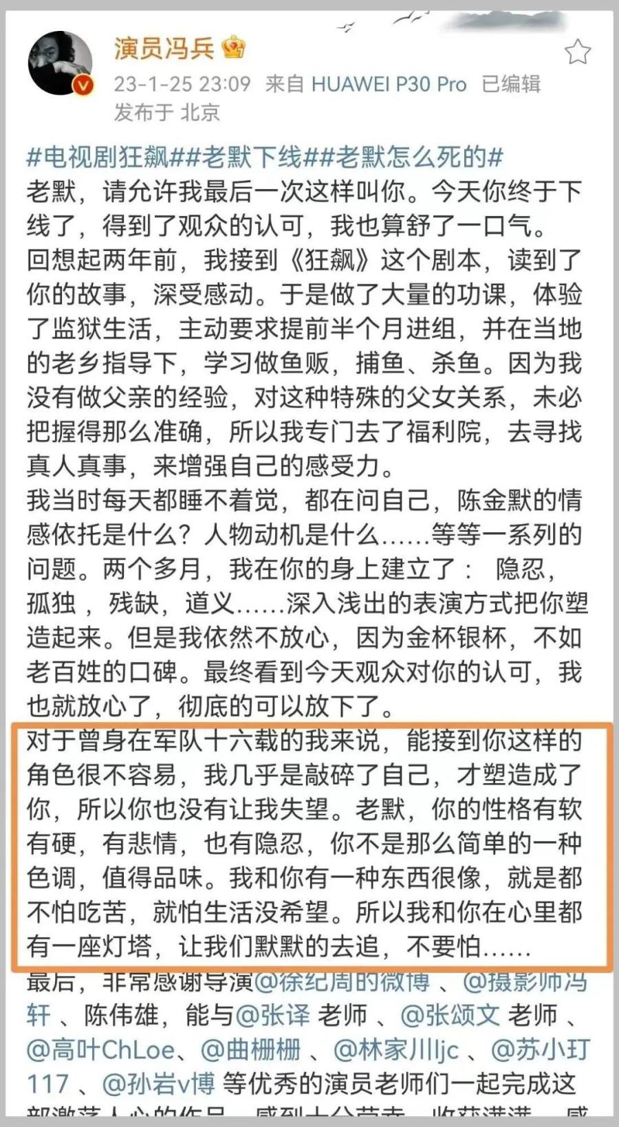 冯兵饰演的老默