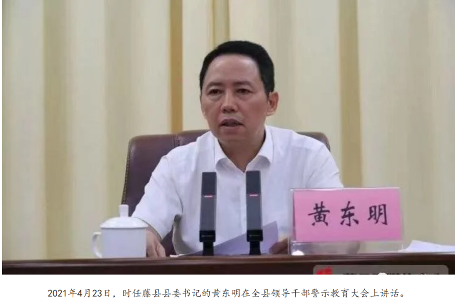 公开信息显示,黄东明曾任藤县县委书记5年,2021年6月调离藤县。
