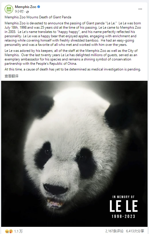 此外,2003年与“乐乐”一同抵达孟菲斯动物园的大熊猫“丫丫”的近况也引起国内网友担忧,呼吁将“丫丫”尽早接回国。对此,北京动物园告诉记者,“目前正在办理丫丫回国相关审批手续,具体日期不清楚”。