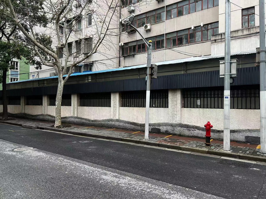 虹口区嘉兴路街道附近的核酸采样亭也仿佛遭遇了“时间停止”。尽管曾经的扫码窗口玻璃被封上了木板,但透过缝隙依旧能看到内里曾经堆放的器材,恍惚间会令人想起那些忙碌的大白和排队的人群。