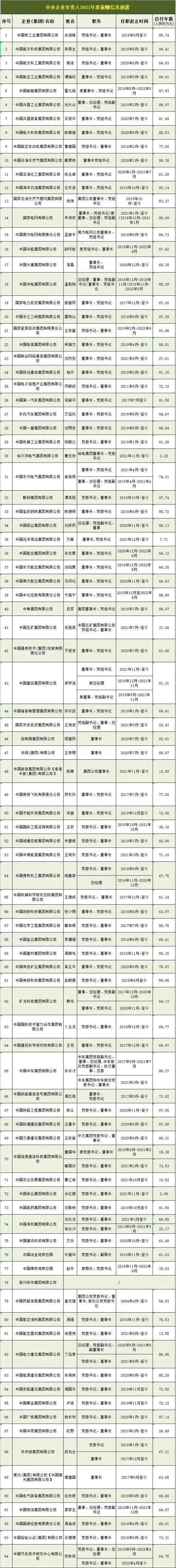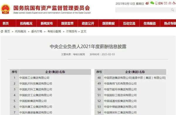 近日,国务院国有资产监督管理委员会官方网站发布了“中央企业负责人2021年度薪酬信息披露”。