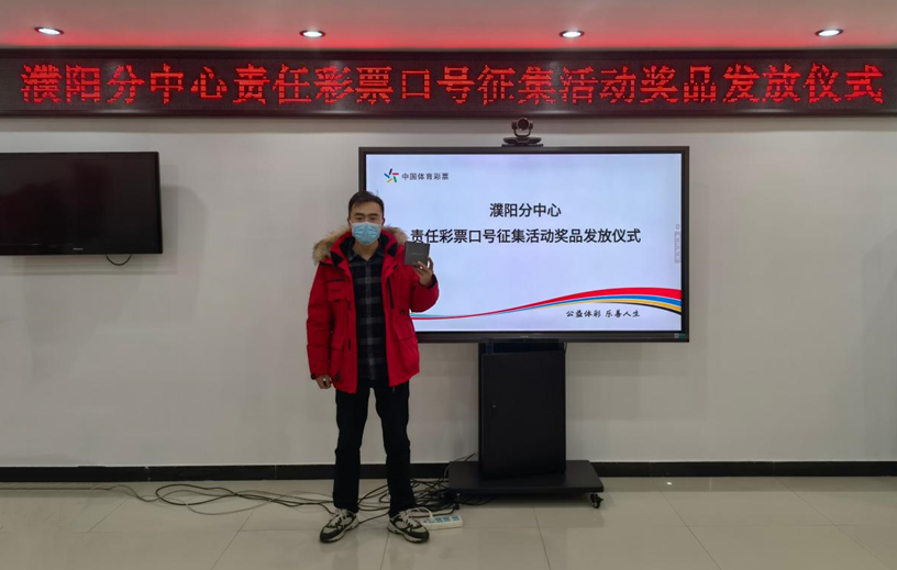 1月5日,郝先生来到濮阳体彩分中心领取“责任彩票口号征集”活动奖品。对于口号入围郝先生非常惊喜,他表示自己的口号能够评为省级优秀奖已经非常满意了,如果能入围国家级也是自己的荣誉。郝先生还表示希望体彩越来越好,责任彩票越来越好,这样体彩从业者才会越来越好。