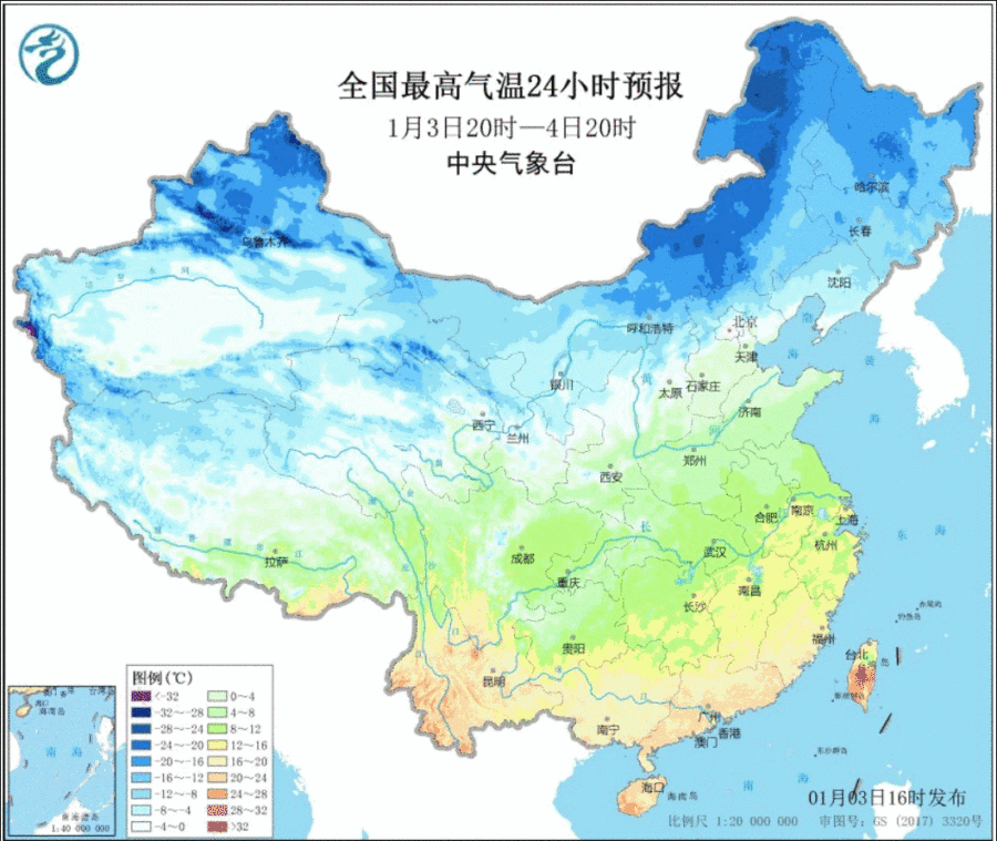 4日,弱冷空气主要先影响西北、华北西部和北部等地,乌鲁木齐4日最高气温降至-16℃,创入冬以来新低。