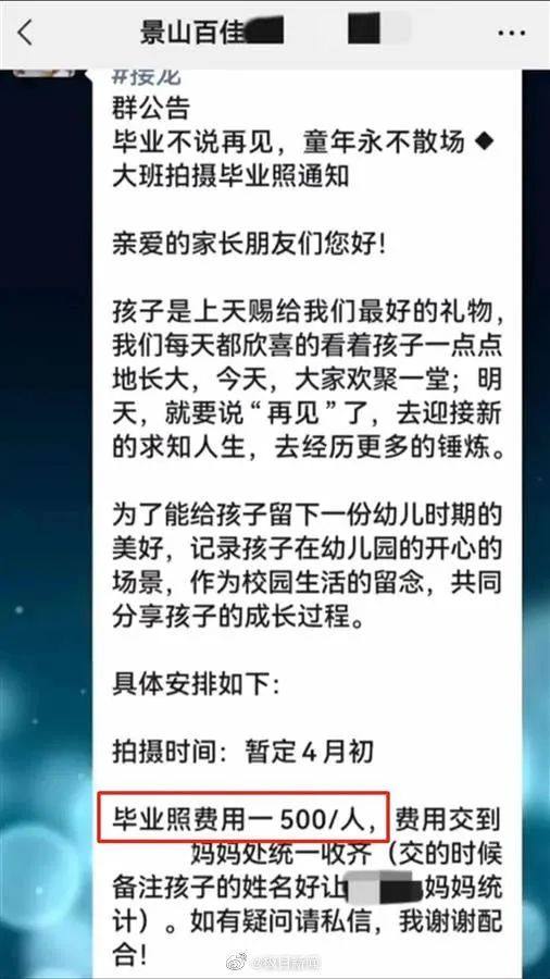 这一切疑问,不是一句“家委会自发组织”就能含混过去的。学校和老师理应对涉及金钱的集体活动多点敏感,而不能对家委会的大包大揽听之任之,然后出了问题就甩锅了事。因天价毕业照引发的争议已经足够多了,就在去年,还有媒体曝光了几起幼儿园拍摄毕业照收费过高的问题,相关活动均被取消或退费。但凡学校能够引以为鉴,也不至于出现如今的被动局面。