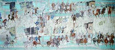 莫高窟第156窟河西节度使张议潮统军出行图(局部)。资料图片
