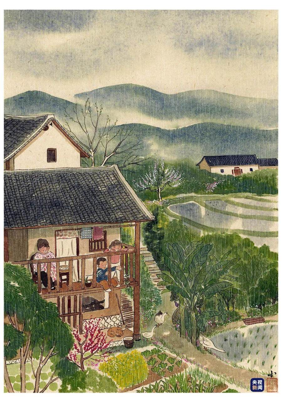 △插画《二十四节气之雨水》央视新闻《夜读》X 水墨画家皇小小独家呈现