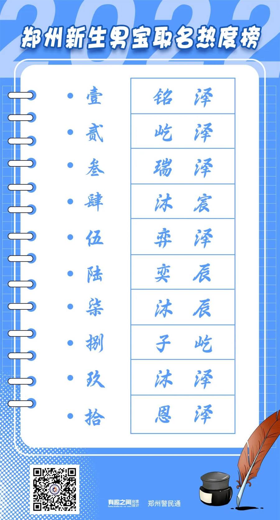 2022年,在郑州办理出生登记的人口中,“铭泽”一骑绝尘,深受家长们的喜爱,共有163名男孩取以此名。