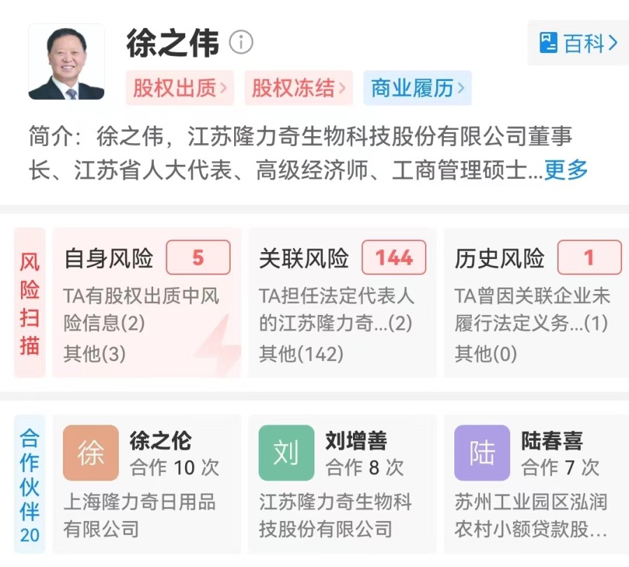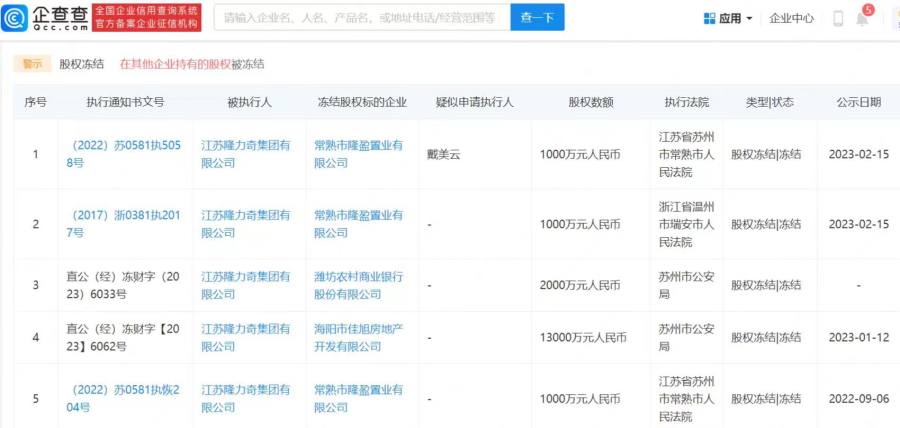 此外,在徐之伟被取保候审消息曝光同一天,苏州警方冻结了隆力奇集团1.5亿元股权。企查查显示,1月12日,苏州市公安局冻结了隆力奇集团在潍坊农村商业银行的2000万股权,以及隆力奇集团在海阳市佳旭房地产开发有限公司的1.3亿股权,合计1.5亿,冻结时间为2023年1月至2023年7月,共计180天。