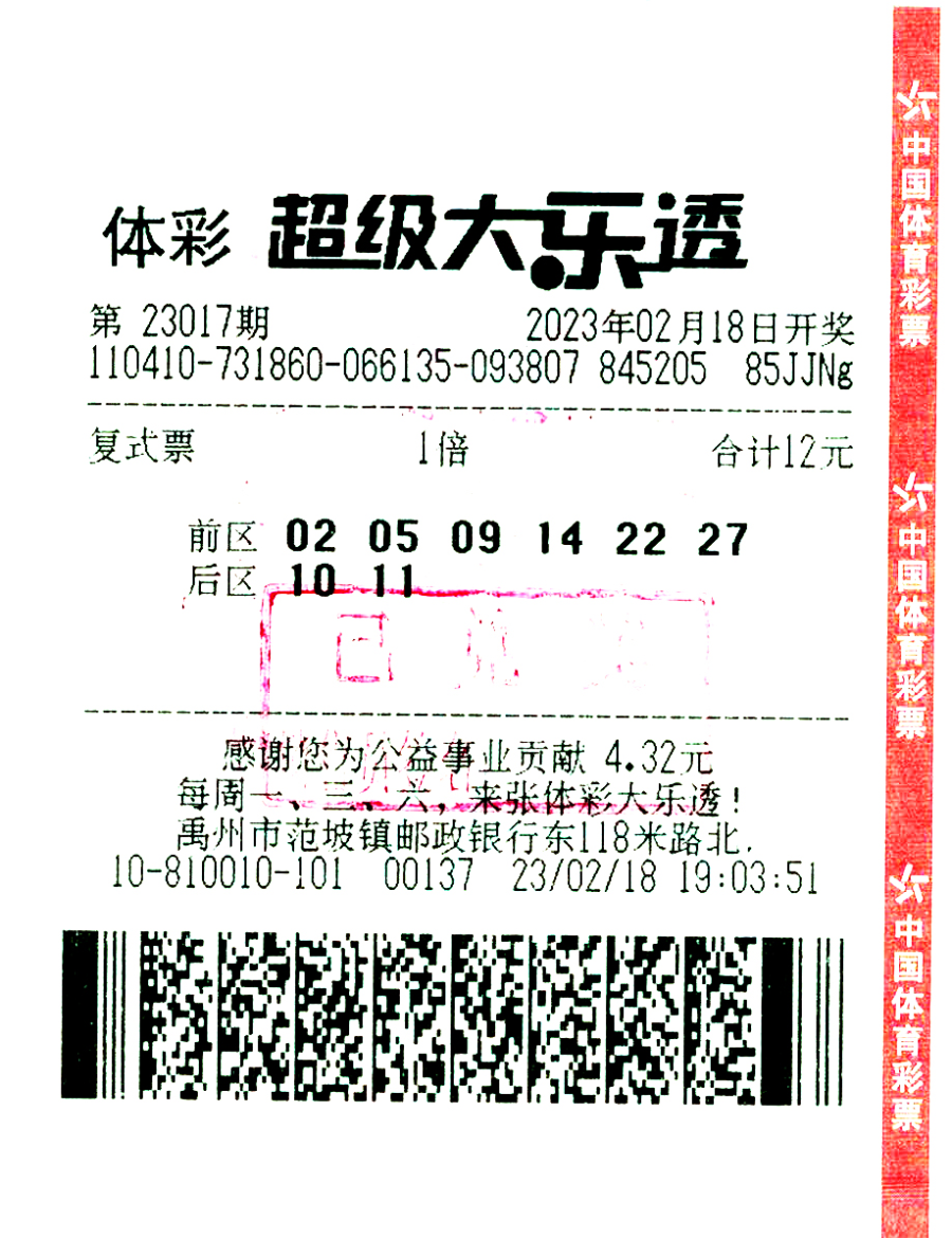 体彩超级大乐透第23017期,一等奖井喷30注,我省许昌购彩者命中1注,中奖彩票是一张6+2复式投注,单票奖金583万元!