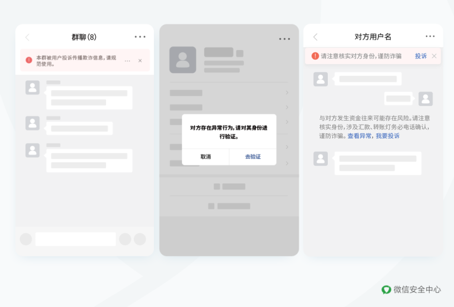 微信安全中心提醒大家,在使用微信和他人沟通时: