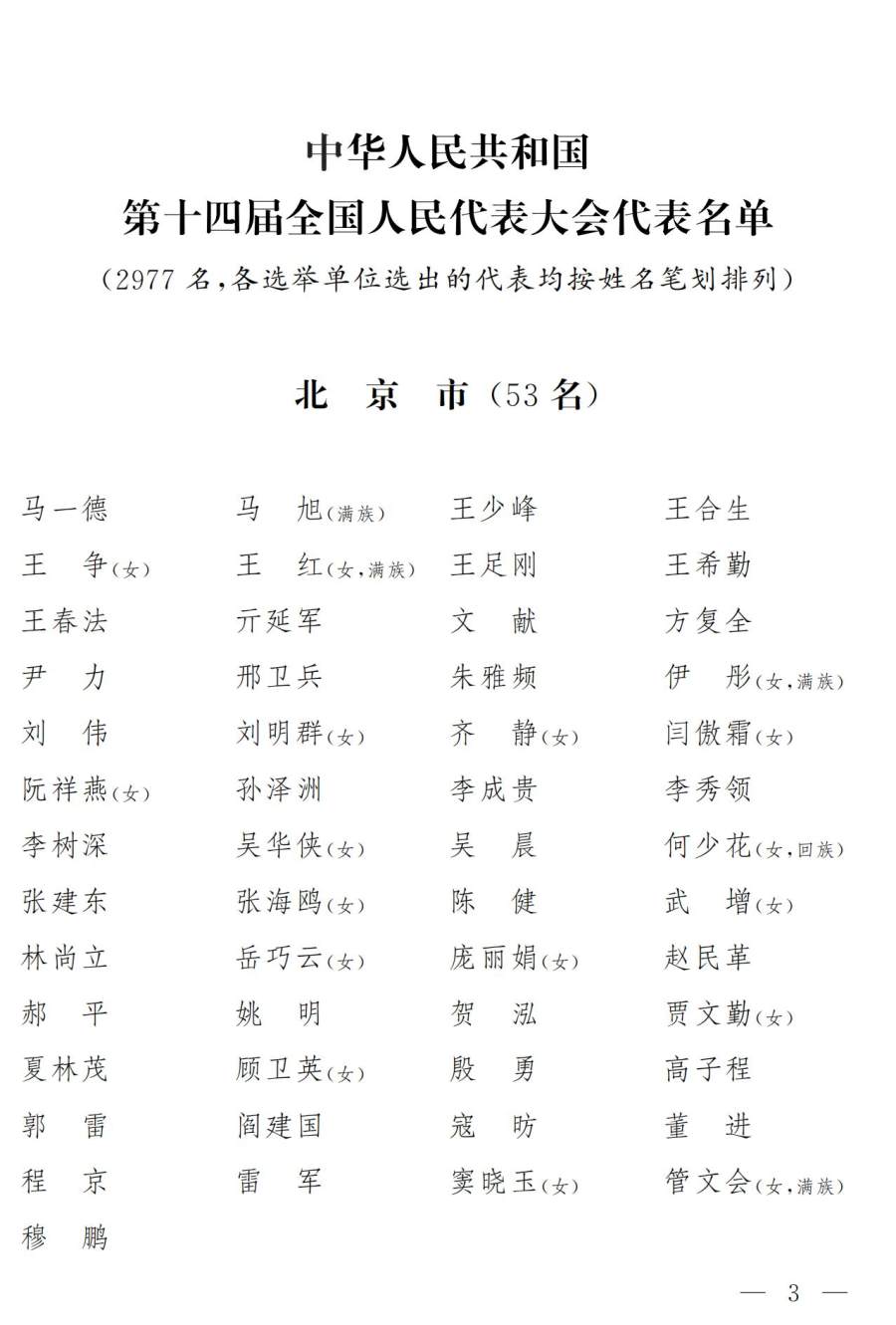 新一届全国人大代表全名单公布!共2977名,其中河南174名