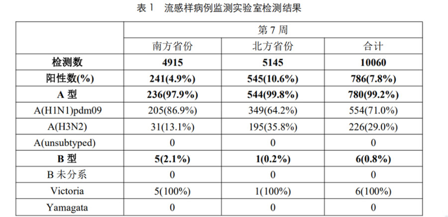 《流感监测周报》数据截图