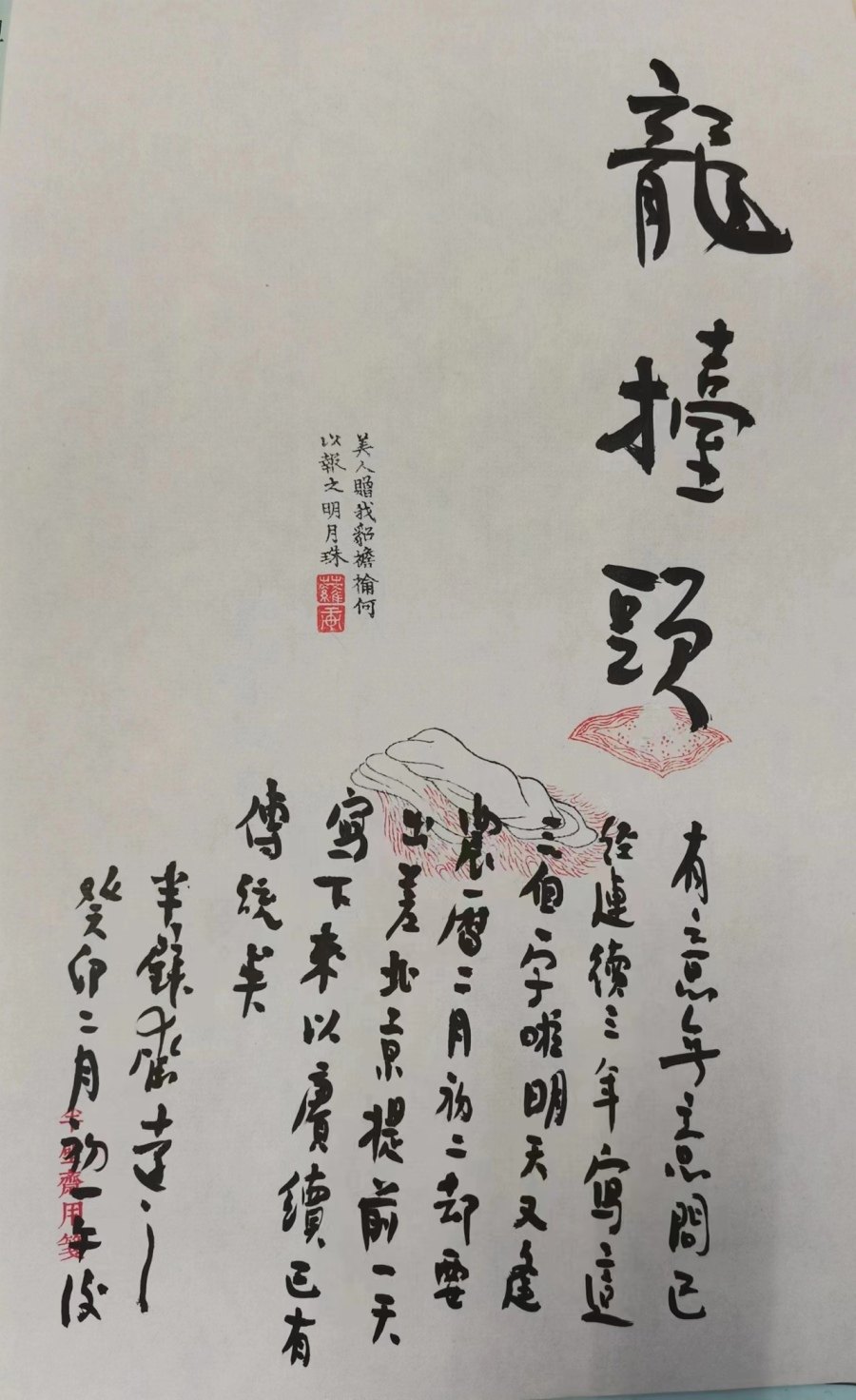“半壁斋”是他的书房,我还未曾瞻仰,但“半壁斋用笺”已登各大朋友圈。华笺取汉张衡《四愁诗》句“美人赠我貂襜褕,何以报之明月珠”,诗情画意,风雅之极,进步空间,十分有限。