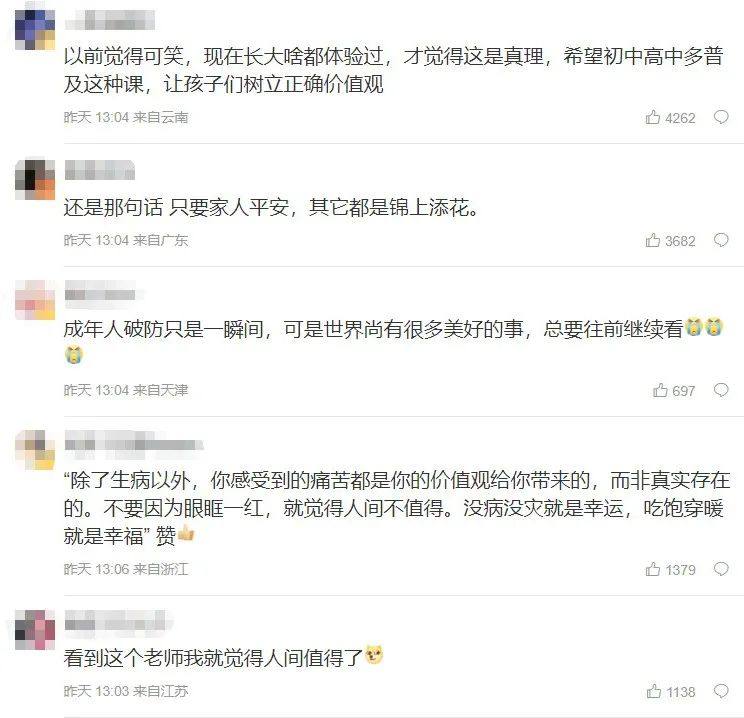 网友纷纷在评论区表示:“保持健康平安 其余的皆是锦上添花”、“希望多普及这种课”……
