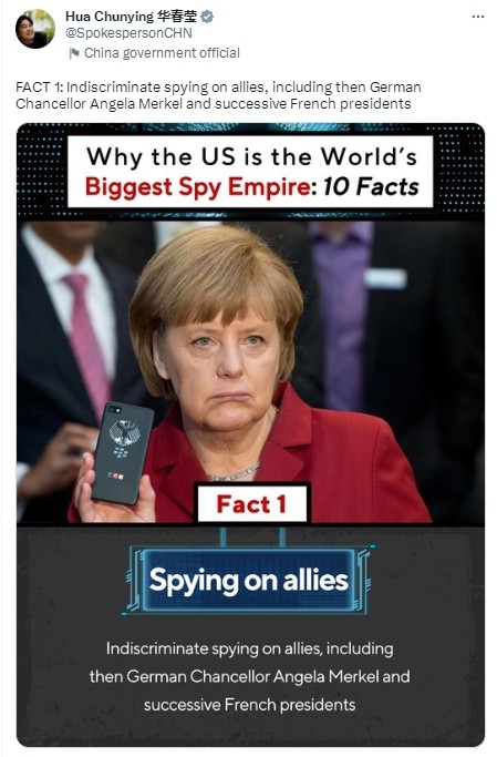 此外,中国外交部发言人汪文斌近日也表示,长期以来,美国滥用自身技术优势,对全世界包括其盟友进行大规模、无差别的监听窃密,行动遍布各地,侵犯他国主权和利益,违反国际法和国际关系基本准则。美国是当之无愧的世界最大间谍惯犯和监控帝国。
