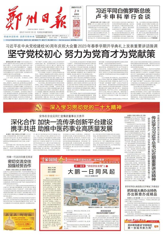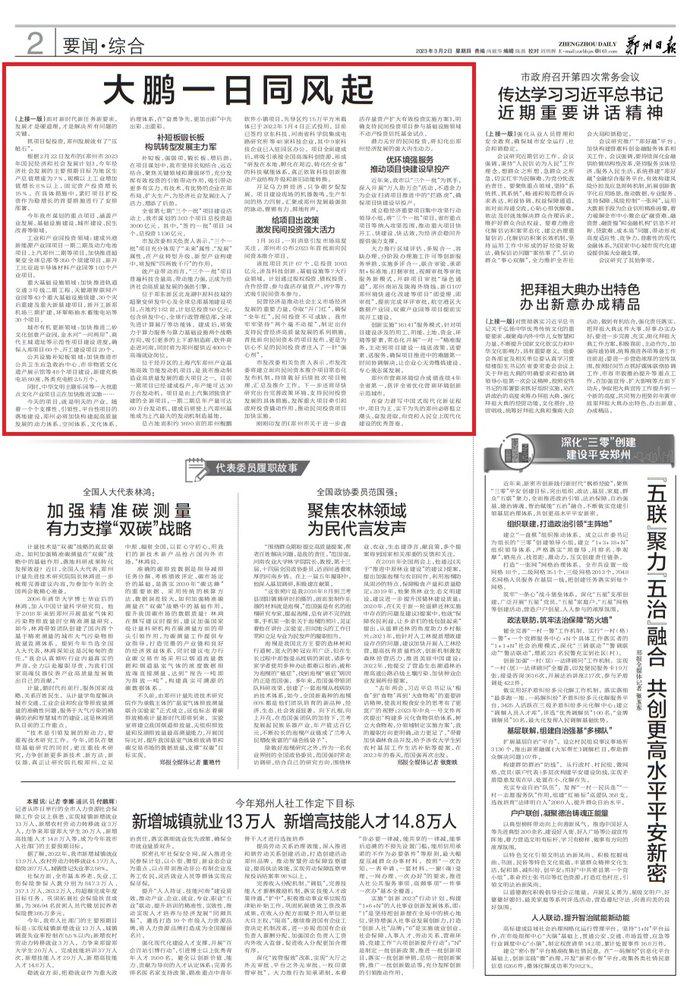 本报特推出【家国同春】——中国式现代化的“郑州图景”大型系列报道,全方位展示郑州市全力以赴跑出高质量发展“加速度”的干劲和蓬勃的朝气。今日刊发第一篇章“拼经济促发展”之一《大鹏一日同风起》。