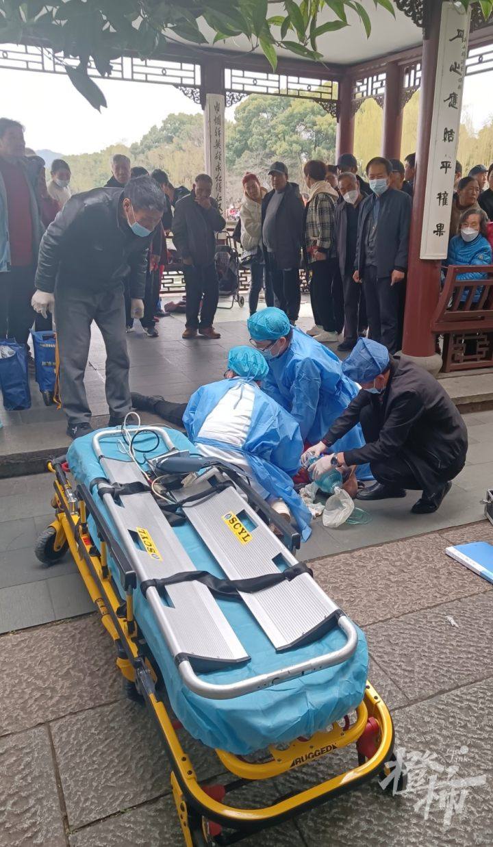 杭州西湖边唱歌老人突然摔倒,目前有了自主心跳,医生:多亏现场有人马上急救