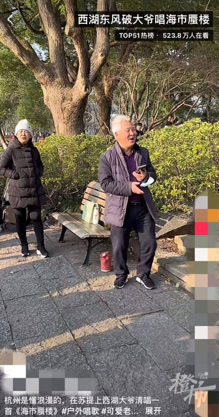 例如这段时间在短视频平台走红的一位杭州老人,因为在西湖苏堤边演唱的《东风破》在网络上热传。