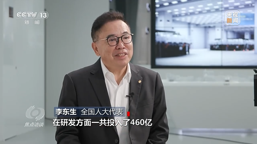 全国人大代表 李东生:我们过去几年,在研发方面一共投入了460亿,积累了大量技术专利。在核心技术突破、建立全球竞争力方面发挥了积极的作用。