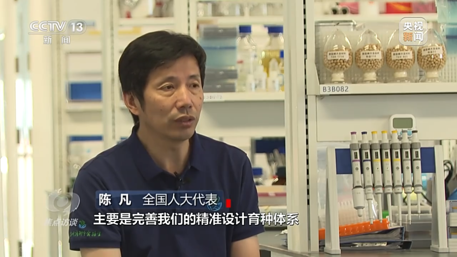 全国人大代表 陈凡:通过一系列平台搭建和人才队伍,完善精准设计育种体系,传统的一个品种培育要15年,现在采用生物技术,能实现四到五年培育出一个大的品种。未来希望在两至三年就能因地制宜设计出好的品种来。