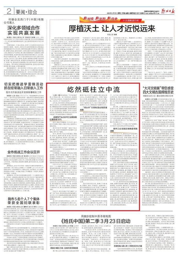本报特推出【家国同春】——中国式现代化的“郑州图景”大型系列报道,全方位展示郑州市全力以赴跑出高质量发展“加速度”的干劲和蓬勃的朝气。今日刊发第二篇章“现代化产业”之一《屹然砥柱立中流》。