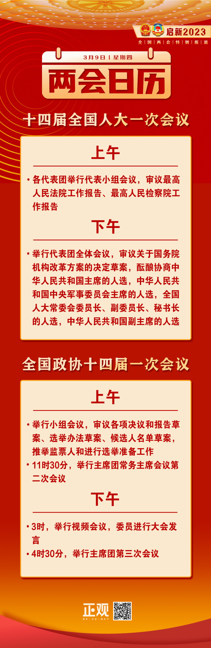 全国政协十四届一次会议9日上午举行小组会议,审议各项决议和报告草案、选举办法草案、候选人名单草案,推举监票人和进行选举准备工作。上午11时30分,举行主席团常务主席会议第二次会议。下午3时,举行视频会议,委员进行大会发言。下午4时30分,举行主席团第三次会议。