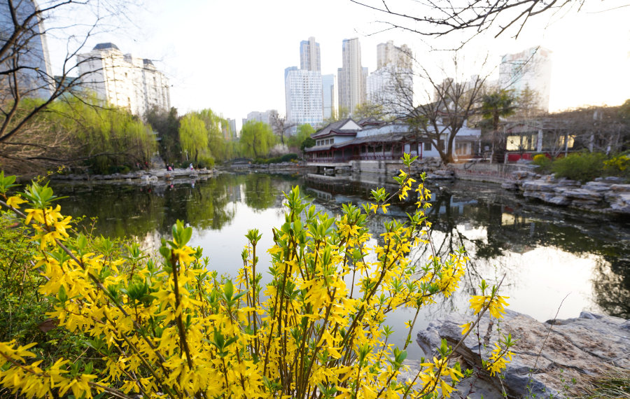 人民公园的连翘花也开得正好。 正观新闻记者 马健 图
