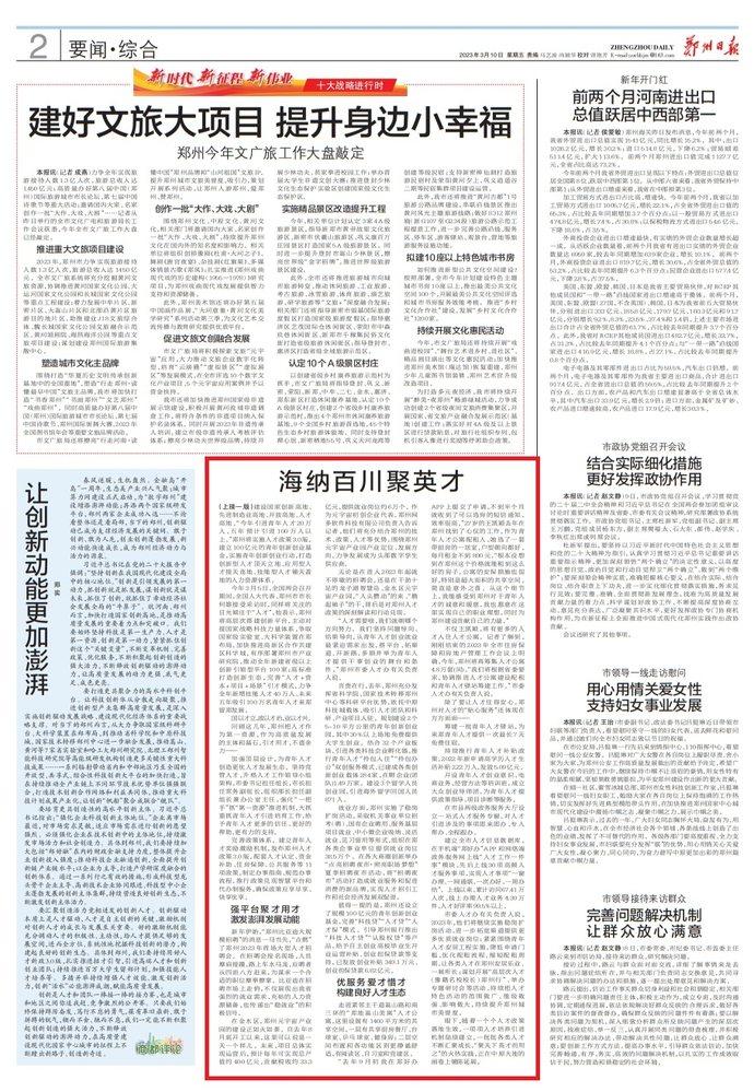 本报特推出【家国同春】——中国式现代化的“郑州图景”大型系列报道,全方位展示郑州市全力以赴跑出高质量发展“加速度”的干劲和蓬勃的朝气。今日刊发第三篇章“创新驱动”之三《海纳百川聚英才》。